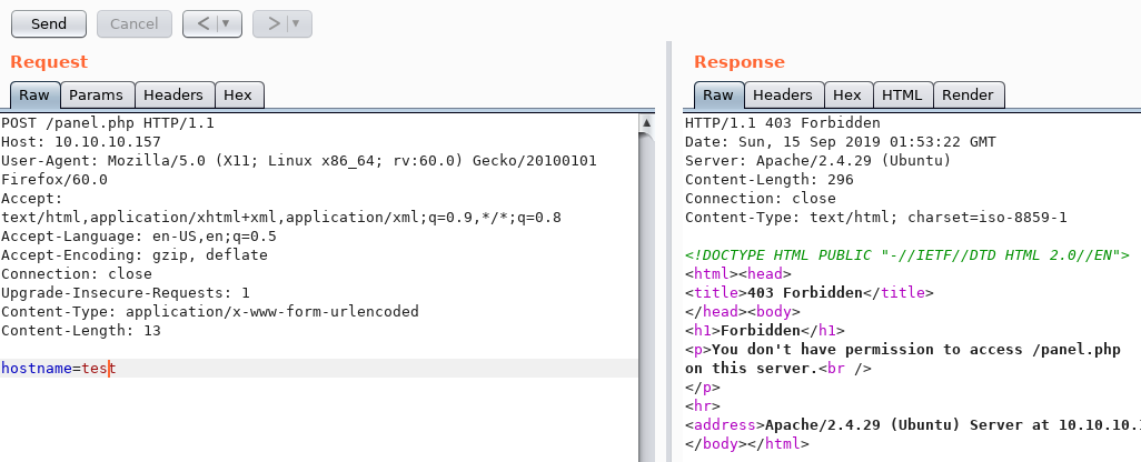 I did however notice that when I send a POST request with nc, hostname or passwd in the payload I get a 403 so this indicates there is probably a WAF running on this machine.