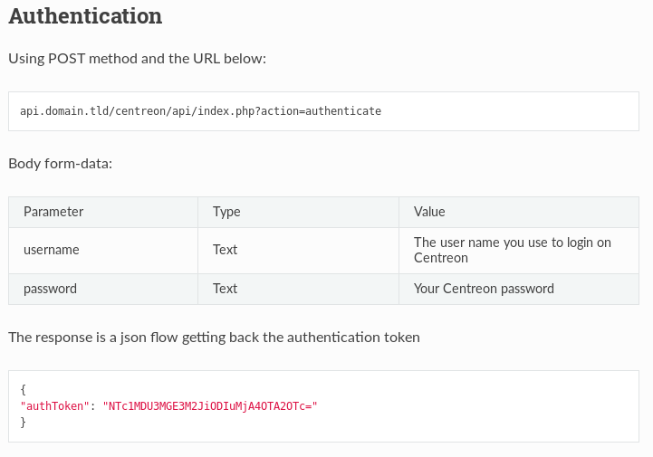 # curl -XPOST -d 'username=user&password=pass' 10.10.10.157/centreon/api/index.php?action=authenticate