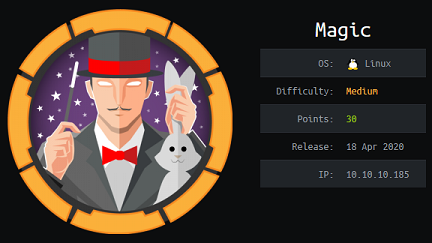 Magic starts with a classic PHP insecure upload vulnerability that let us place a webshell on the target host and then we exploit a subtle webserver misconfiguration to execute the webshell (even though the file name doesn’t end with a .php extension). Once we land a shell, we escalate to another user with credentials found in MySQL and priv esc to root by exploiting a path hijack vulnerability in a SUID binary.