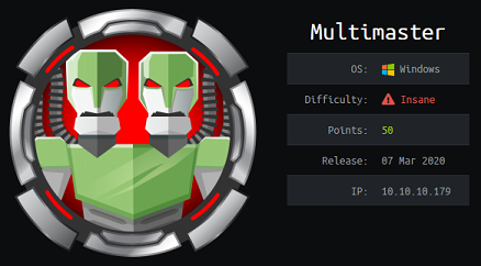 Multimaster was a challenging Windows machine that starts with an SQL injection so we can get a list of hashes. The box author threw a little curve ball here and it took me a while to figure that the hash type was Keccak-384, and not SHA-384. After successfully spraying the cracked password, we exploit a local command execution vulnerability in VS Code, then find a password in a DLL file, perform a targeted Kerberoasting attack and finally use our Server Operators group membership to get the flag.