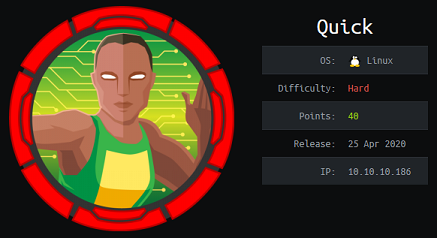 Quick was a hard box with multiple steps requiring the use of the QUIC protocol to access one section of the website and get the customer onboarding PDF with a set of default credentials. We get to play with ESI template injection to get the initial shell, then abuse a race condition in a PHP script so we can pivot to another user then finally we priv esc to root by finding credentials in the printer configuration file.
