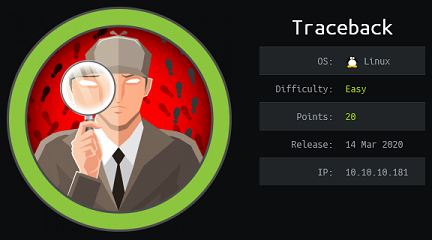 Traceback was an easy box where you had to look for an existing webshell on the box, then use it to get the initial foothold. Then there was some typical sudo stuff with a LUA interpreter giving us access as another user then for privesc we find that we can write to /etc/update-motd.d and those scripts get executed by root.