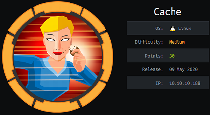 On Cache, we start off with bypassing a simple login form that uses client-side user/password validation, then find a vhost with a vulnerable OpenEMR application. After bypassing the login page, obtaining a valid session cookie and dumping the database through a SQLi injection vulnerability we exploit yet another OpenEMR CVE to get a shell. From there we have access to a memcache instance holding more credentials in memory so we can escalate to another user. Using the docker group membership of that last user, we’re able to launch a privileged container and get root privileges on the host itself.