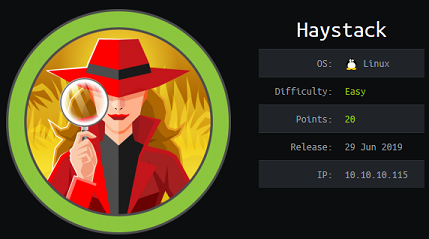 Haystack is an easy ctf-like box where the initial credentials can be found hidden in an ElasticSearch database. Knowing some ES API syntax it’s very easy to retrieve the credentials then get an SSH shell. After exploiting CVE-2018-17246 in Kibana, I get another shell with user kibana who has read access on the configuration for logstash which is running as root. The logstash configuration will run as root any command placed in a specific logstash directory/file so once I figured that out it was easy to get a root shell.