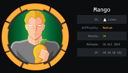 Mango was a medium box with a NoSQSL injection in the login page that allows us to retrieve the username and password. The credentials we retrieve through the injection can be used to SSH to the box. For privilege escalation, the jjs tool has the SUID bit set so we can run scripts as root.