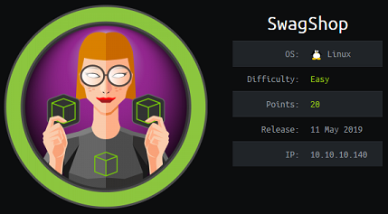 SwagShop is one of those easy boxes where you can pop a shell just by using public exploits. It’s running a vulnerable Magento CMS on which we can create an admin using an exploit then use another one to get RCE. To privesc I can run vi as root through sudo and I use a builtin functionality of vi that allows users to execute commands from vi so I can get root shell.
