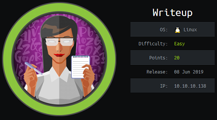 Writeup starts off easy with an unauthenticated vulnerability in CMS Made Simple that I exploit to dump the database credentials. After cracking the user hash, I can log in to the machine because the user re-used the same password for SSH. The priv esc is pretty nice: I have write access to /usr/local and I can write a binary payload in there that gets executed by run-parts when I SSH in because it’s called without the full path. Another nice box by jkr.
